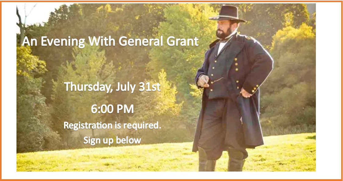 Interpreter Ken Serfass will become General Ulysses S. Grant and entertain with stories about his service in the Civil War and his unique friendship with President Abraham Lincoln.
